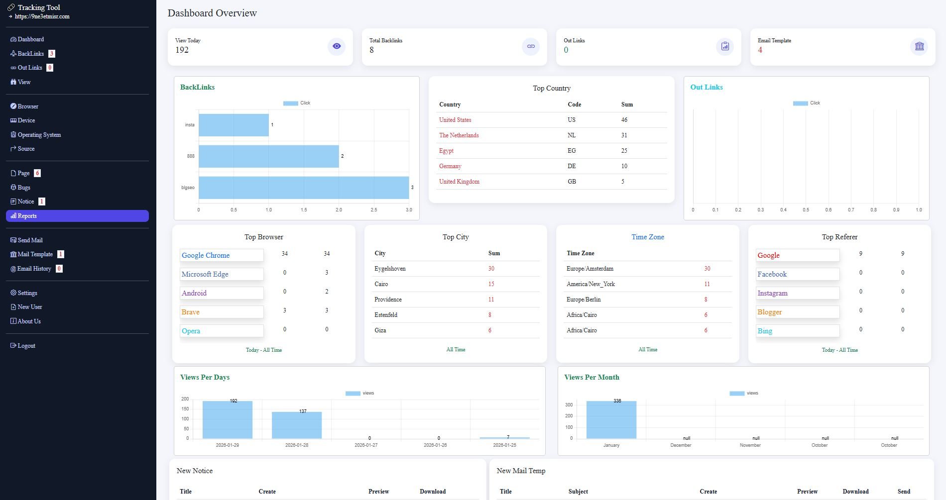 A powerful and lightweight Website & Link Tracking Tool built with PHP Native and MySQL, designed to help website owners, marketers, and developers monitor visits, analyze traffic, and track links easily from one clean dashboard.